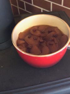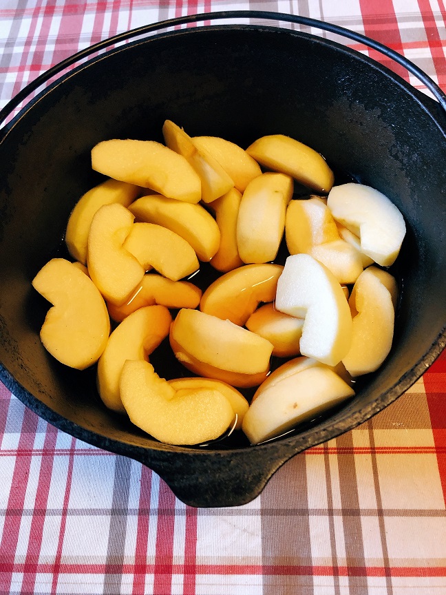 - 満遍なく煮えるように、時々林檎の上下を返す。